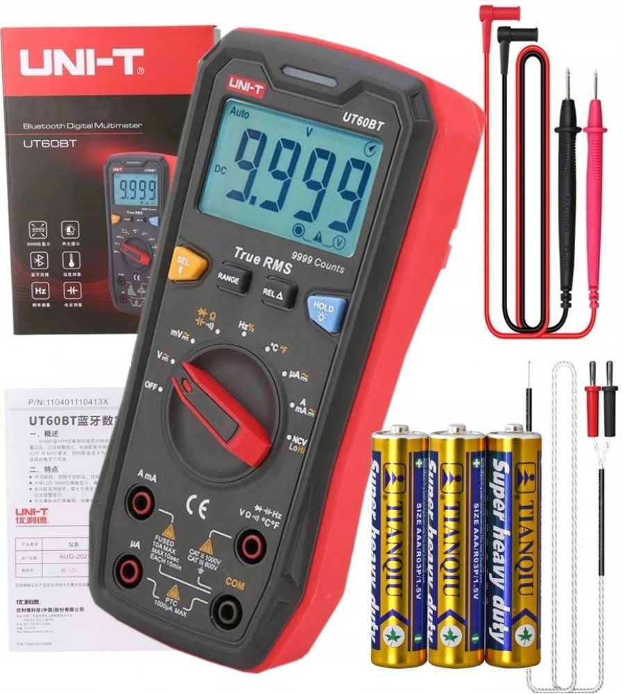 Přístroj UT60BT je digitální multimetr s rozsahem displeje 9999, který umožňuje měření skutečných efektivních hodnot RMS napětí a proudů s automatickou i manuální volbou rozsahů. Na všech rozsazích má ochrany proti přetížení 1000V rms, proudový rozsah je chráněn trubičkovou pojistkou 10A / 1000V, 6,35 x 32mm. Pokud se při měření napětí a proudů blížíte hraničním hodnotám ≥99...