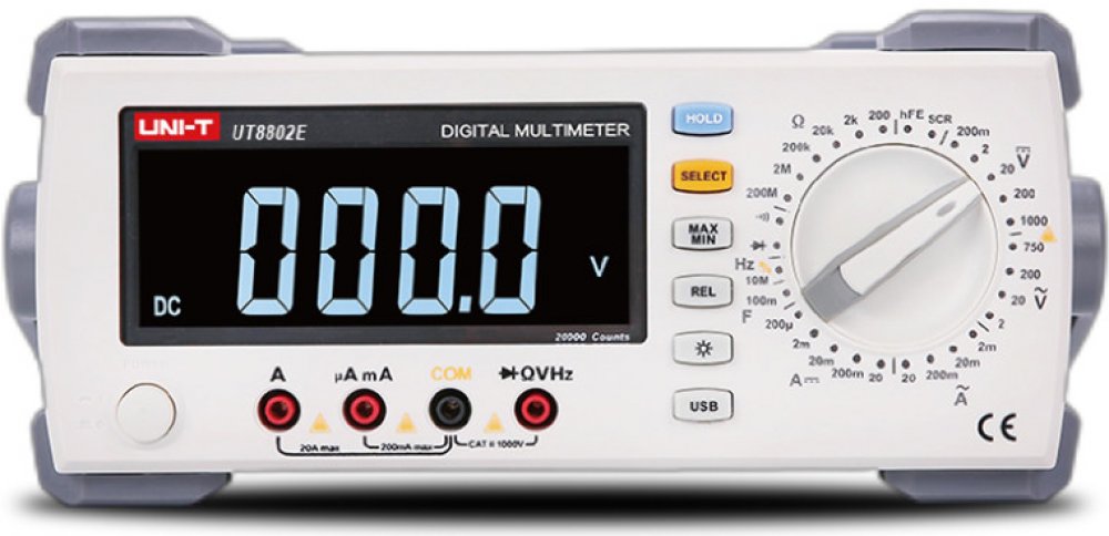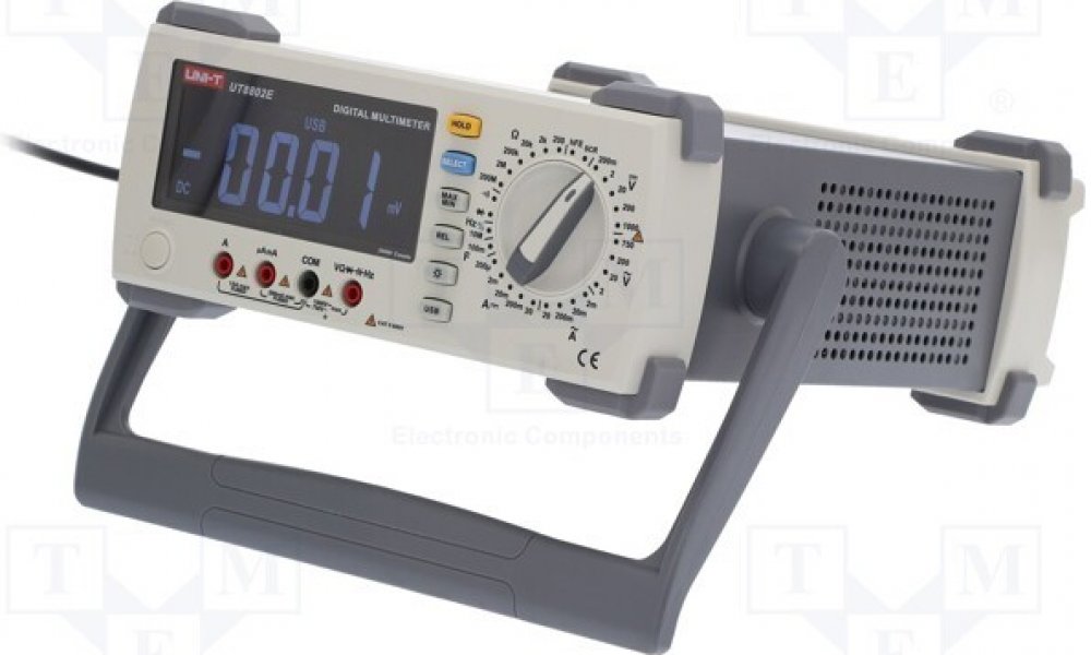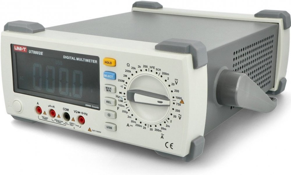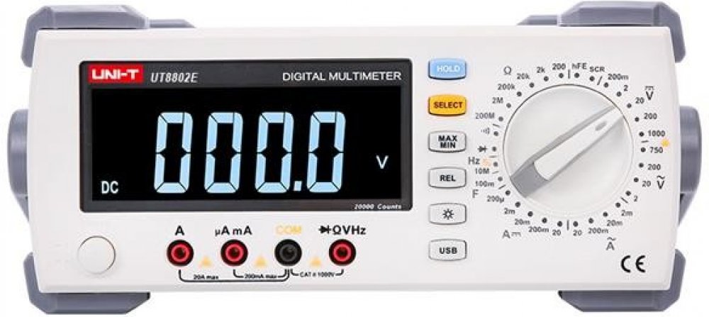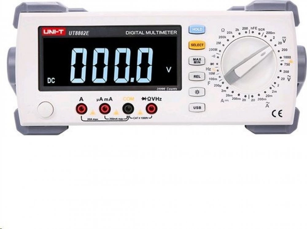 UT8802 je stolní multimetr s ruční volbou měřeného rozsahu, zobrazitelnou hodnotou až 19 999, velkým LCD displejem s podsvícením, ochranou proti přetížení v celém rozsahu a unikátním designem.