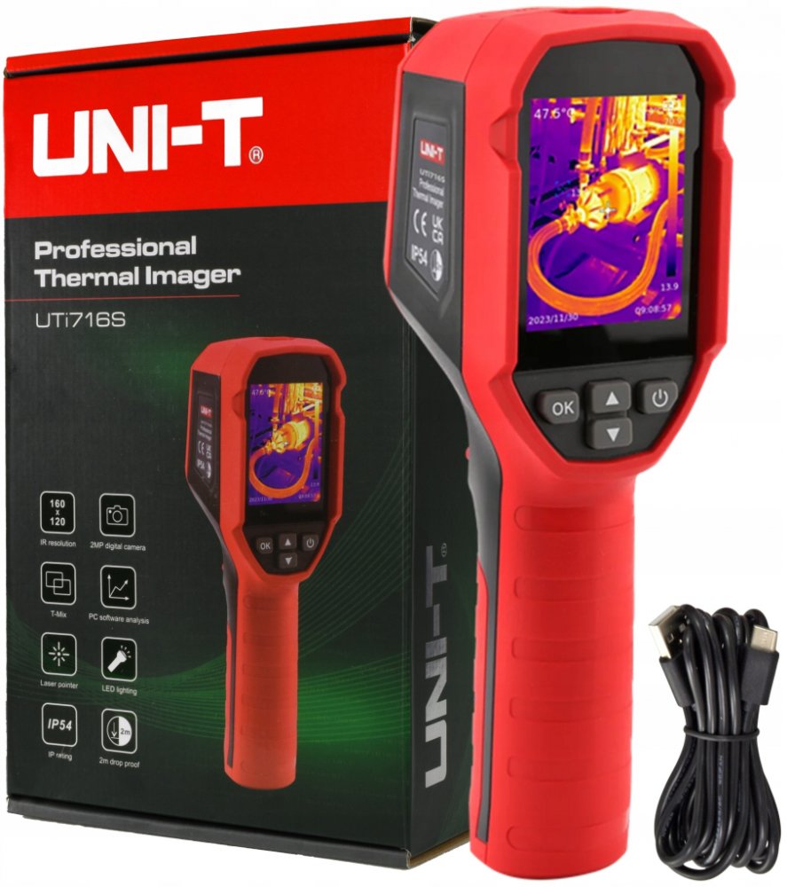 Termovizní kamera Uni-T UTi716S je pokročilý diagnostický nástroj, který splňuje potřeby profesionálů v oblasti stavebnictví, údržby a diagnostiky zařízení. Díky své vysoké citlivosti a preciznosti je UTi716S ideální volbou pro inženýry, servisní techniky a odborníky, kteří potřebují spolehlivé a přesné měření teploty v široké škále aplikací. S rozsahem měření od -20 °C do 550 °C a přesností ±2 °C nebo ±2 % nabízí tato termovizní kamera vynikající výkon i v náročných podmínkách.