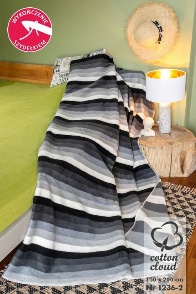 Unia Cotton Cloud bavlna akrylová přikrývka 1236/2 pruhovaná ecru šedá černá přes postel přikrývka 150x200