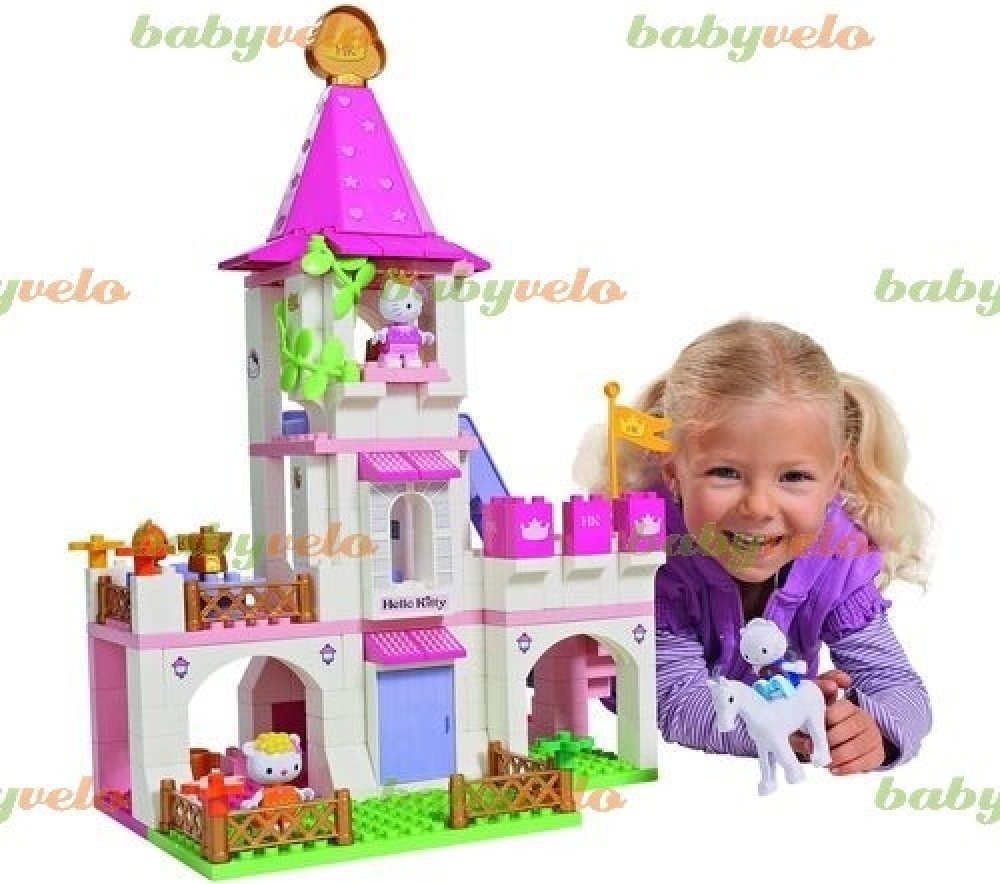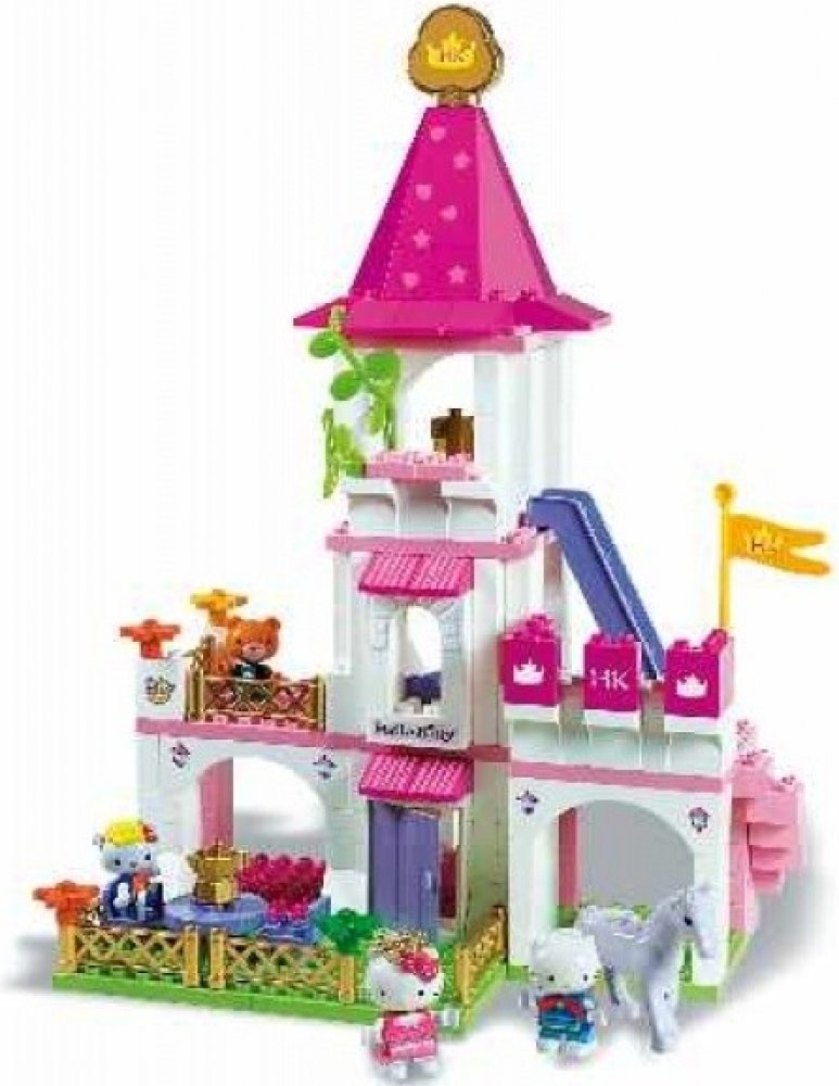 Stavebnice Hello Kitty + 5 figurek (typ LEGO DUPLO). Zámek pro Hello Kitty a kamarádky. 5 figurek - Hello Kitty, kamarádky a koník. Baleno v kvalitním kartonovém obalu s barevným potiskem, návod na sestavení součástí balení. Plně kompatibilní s dalšími stavebnicemi (LEGO DUPLO, MUBI apod.). Rozměry krabice (kartonového obalu) cca. 51x39x10cm. Nezávadný plast, certifikace CE, vyrobeno v Itálii. 171...