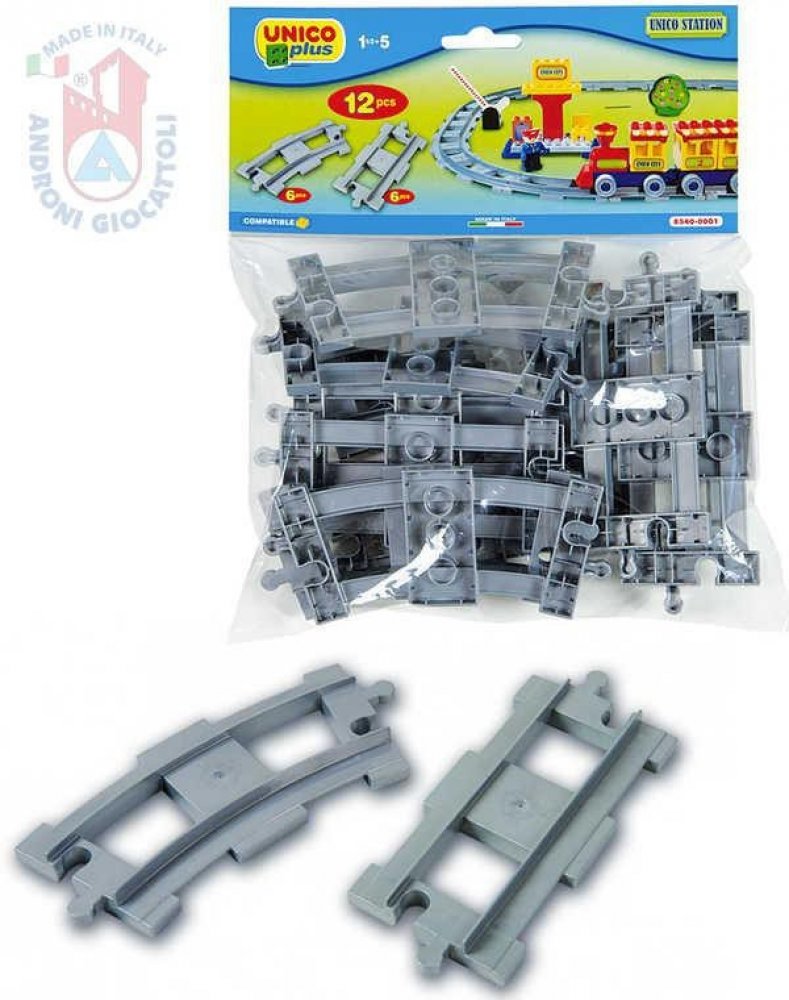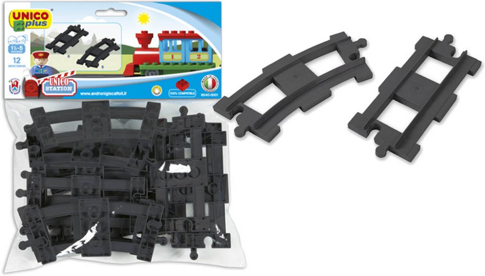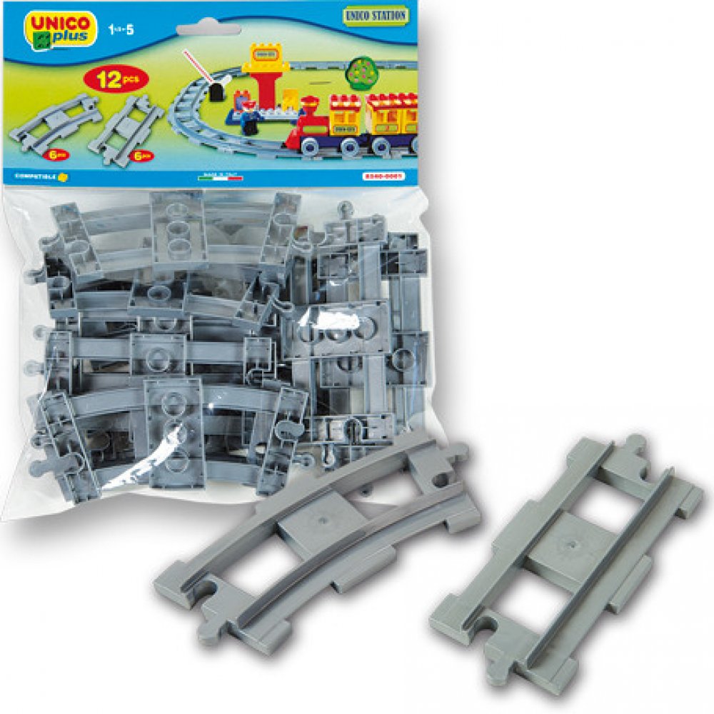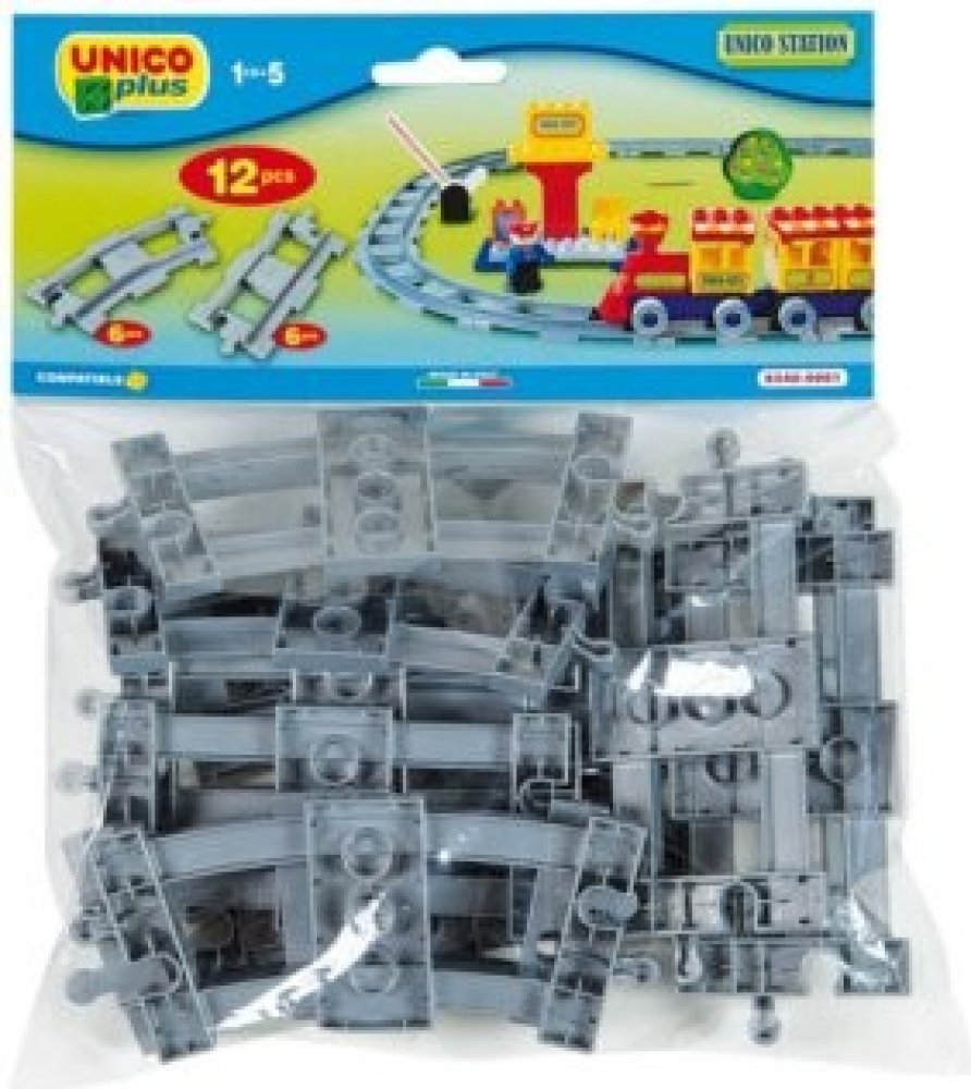 Sada 12ks kolejí pro vláčky. Rozšiřující sada kolejí pro stavebnice typu Lego DUPLO. 6 zaoblených kolejí, 6 rovných. Plně kompatibilní s dalšími stavebnicemi (LEGO DUPLO, MUBI apod.). Nezávadný plast, certifikace CE, vyrobeno v Itálii. 12 dílků. Stavebnice UNICO PLUS pomáhají dětem rozvíjet kreativitu a představivost, učí je řešit problémy, trénují manuální schopnosti a jemnou motoriku. Lehce se skládají, jsou dodávány v estetických obalech, mají evropský atest i certifikaci. Jsou plně kompatibilní se všemi ostatními známými značkami stavebnic jako je LEGO DUPLO, MUBI a další.
