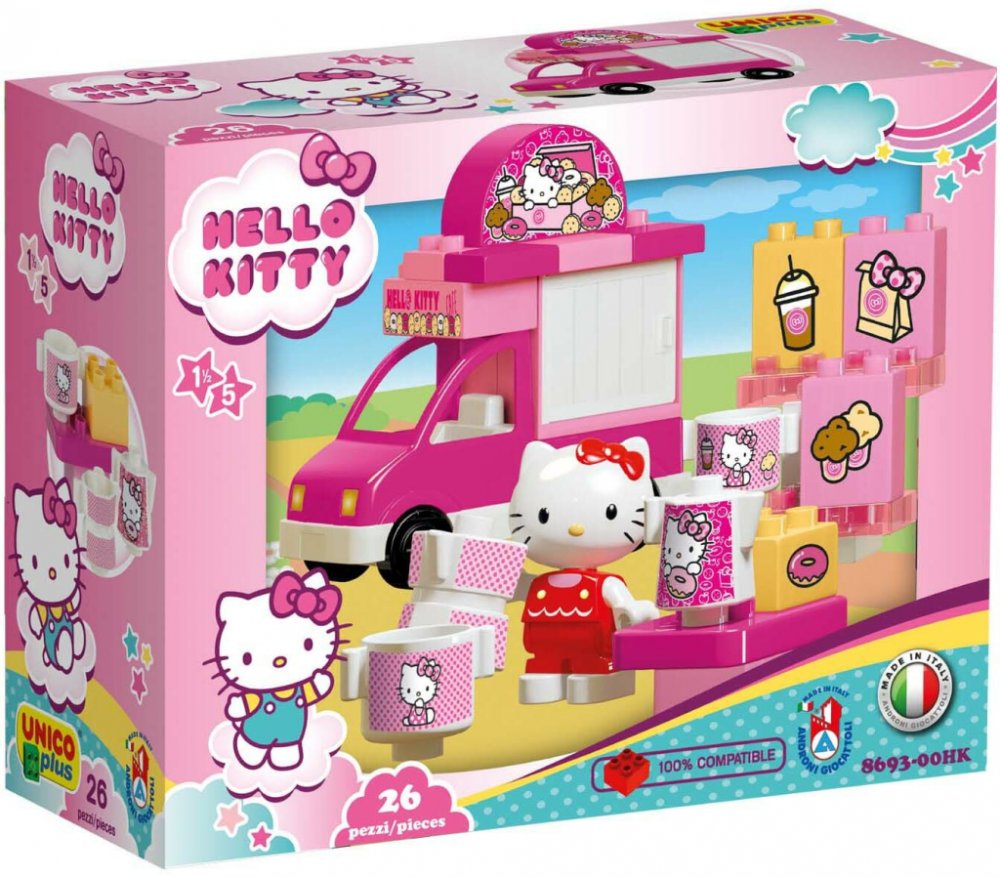 Unico Plus - barevná plastová stavebnice od Androni, pro nejmenší děti, které si z ní mohou sestavit model zmrzlinářského vozu s doplňky. Součástí balení je také jedna figurka. Baleno v krabici.