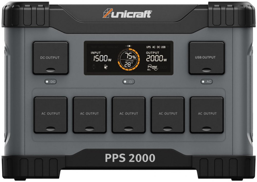 Nulové emiseLze použít samostatně ve spojení se solárními panely (příslušenství)Vestavěná lithium-železofosfátová baterie extrémně odolná a teplotně odolnáIdeální na cestování, snadné manipulace díky integrovanému držadlu a nízké hmotnostiRobustní konstrukce, vhodná pro venkovní použitíLCD displej pro snadné ovládání a zobrazeníIntegrovaná LED svítilna na zadní straněUniverzálně dobíjecí pomocí solárního panelu (k dispozici jako příslušenství), 12V nebo 230V nabíječka (součástí balení)Inteligentní nabíjení díky připojení USB-C s funkcí Power DeliveryIntegrovaná funkce rychlého nabíjení na výstupu USB-A a USB-CFunkce bezdrátového nabíjení pro váš smartphonePřipojená zařízení chráněná inteligentním systémem správy baterieZcela bezúdržbovýTechnické specifikaceKapacita baterie1843 WhProvozní doba při 100% zatížení0,9 hNabíjecí cykly (kapacita > 80 %)> 2000Typ baterieLiFePo4Provozní teplota -10 – 40° °CDoba nabíjení na 100% akumulátoru se solárním panelem8 h (2 x 200 W)AC vstup220 – 240 V, 50 – 60 Hz, 1200 WDoba nabíjení na 100 % akumulátoru s 230 V AC1,8 hDC solární vstup1200 W Max., 10 - 150 V, 20 A (konektor Anderson)Doba nabíjení na 100 % akumulátoru pomocí 12V adaptéru do auta18,4 hStupeň krytí zásuvekIP 65Výstupní AC zásuvka5 x 230 V / 50 Hz / 2000 W (4000 W špičkový)Výstupní DC2 x DC5521, 5 A, 13.6 V, max. 100 W, 1 x zapalovač cigaret 10 A, 12 V, max. 120 WVýstup USB-C (USB-PD)5 / 9 / 12 / 15 / 20 V DC, up to 5 A, max. 2 x 100 WVýstup USB-A5 / 9 / 12 V DC, up to 3 A, max. 4 x 24 WBezdrátový výstup15 WRozměry (š × v × h)430×300×275 mmHmotnost28 kgHl. akustického výkonu LWA54 dB(A)Rozsah dodáníŘídící systémDisplej LCD