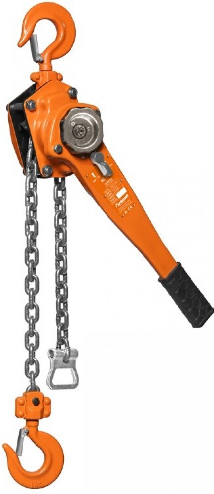 Řetězový kladkostroj Unicraft HZ 3001 Ruční řetězový naviják s nosností 3 000 kg. Ideální pomocník pro zvedání, tahání a napínání břemen i ve stísněných prostorách. Plynulý zdvih břemene Malá síla nutná pro zdvih maximální zátěže pomocí krátké páky s protiskluzovou gumovou rukojetí Tlaková bezazbestová brzda Hák otočný pomocí ložisek Základní zdvih 1,5 m Robustní konstrukce odolná proti nárazům