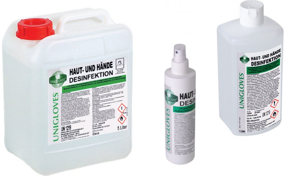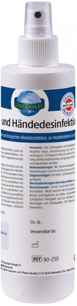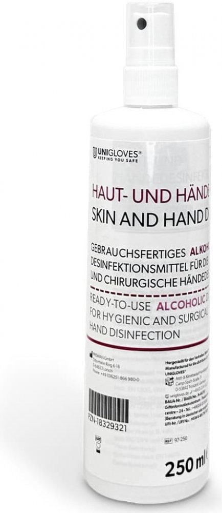 Unigloves 250 ml na ruce spreje v láhvi s pumpou pro pravidelné denní použití s ethanolem / isopropanolem 70.0 % dermatologicky testované