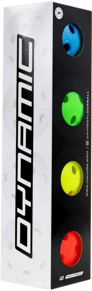 Unihoc DYNAMIC je novou generací florbalového míčku od značky Unihoc. Jeho design přispívá k optimálnímu zklidnění míčku v letové fázi a špičkové rotaci po hracím povrchu. Vnitřní konstrukce míčky byla zpevněna speciálními vzpěrami, čímž se zvýšila jeho tuhost a trvanlivost. DYNAMIC je díky tomu míčkem se špičkovými herními vlastnostmi. Výroba míčků probíhá ve Švédsku. Chceš vědět vše o míčkách, podívej se na náš článek: JAK SI VYBRAT KVALITNÍ FLORBALOVÉ MÍČKY?.