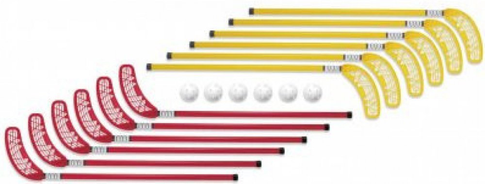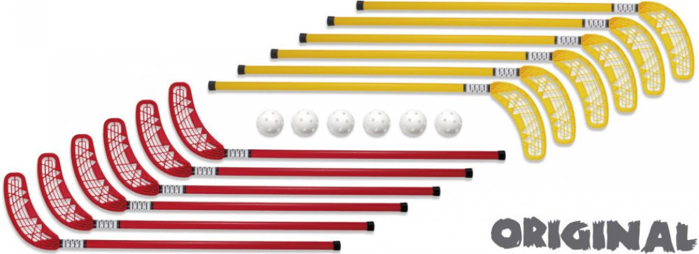 Sada Unihoc Set Original obsahuje 12 hokejek a 6 míčků. Hodí se zejména pro školy a sportovní kroužky z toho důvodu, že hole mají rovné čepele a můžete je po zahřátí v teplé vodě zahnout na potřebnou stranu. hokejky pro zájmové kroužky a školy rovná čepel bez