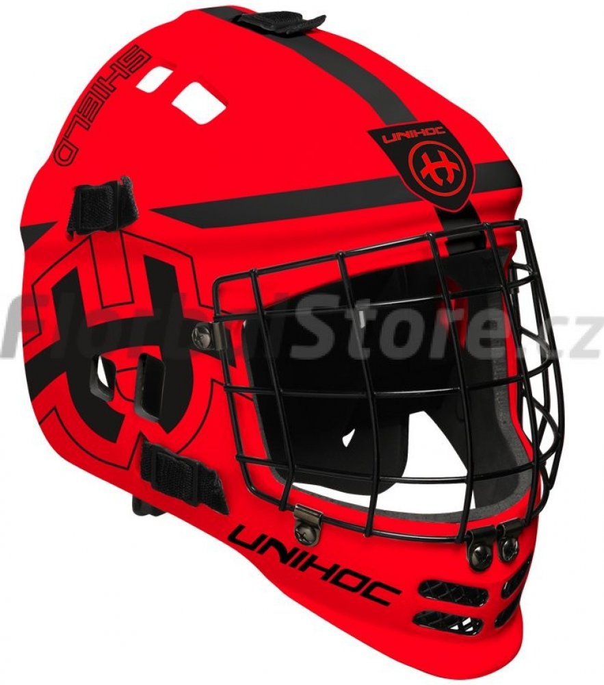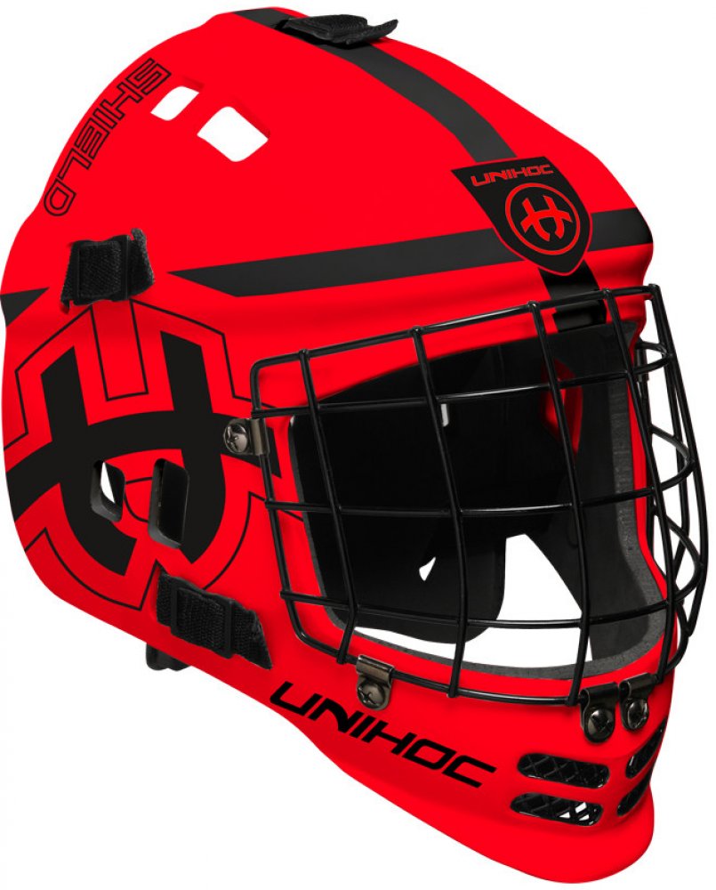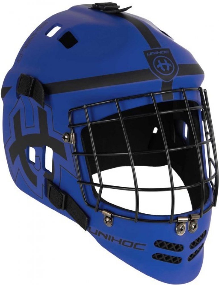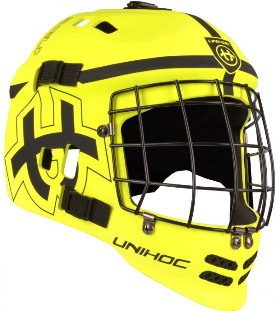 Hlava musí být po celou dobu v maximálním bezpečí a komfortu. Tato maska spojuje ověřené prvky a zkušenosti brankářů v jeden celek. Maska je lehká a umožňuje rychlý pohyb hlavou pro dokonalý přehled o hře. Uvnitř masky jsou rozmístěné odnímatelné polstry. Chrání hlavu při nárazu a zároveň efektivně odvádí pot. Chránič brady je z měkké pěny a je nastavitelný. Aby maska dokonale seděla každému brankáři, jde snadno přizpůsobit díky pěti přezkám na vnější straně masky. Masku hravě nasadíte jednou rukou a díky pružným gumovým popruhům drží bezpečně i při náročných situacích a těžkých zákrocích. Brankáři se shodují, že i při zákrocích, kdy musí skočit po míčku, helma drží pevně a mohou se spolehnout, že mají nejlepší možný přehled o situaci okolo sebe. Společně s brankařským dresem Unihoc Shield a kalhoty Unihoc Shield budou tvořit skvělý designový celek. Klíčové vlastnosti Maska je lehká a umožňuje rychlý pohyb hlavou. Technologie, které efektivně odvádí pot. IFF certifikace pro oficiální soutěžní zápasy