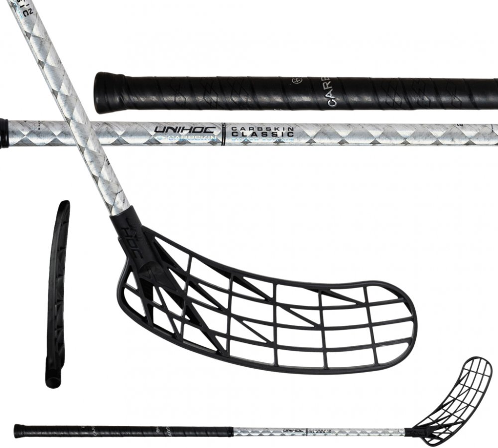 Novinka od značky Unihoc pro sezónu 2025/26 florbalová hůl Unihoc Unilite Carbskin Titan 29 Classic Silver z řady Max.