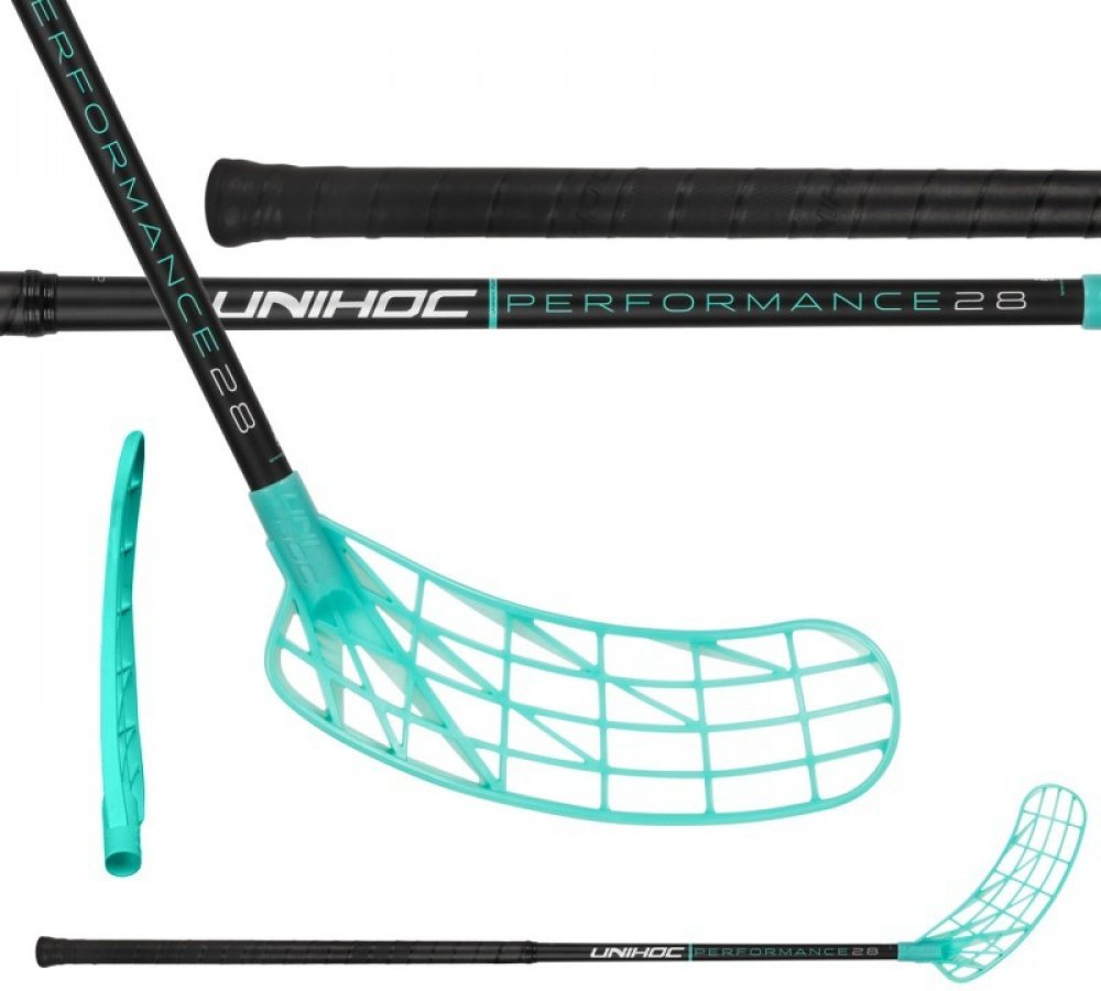 Florbalová hůl Unihoc Unilite Performance 28 Black-Turquoise je novinkou na sezónu 2024/2025. Hůl patří do řady holí PERFORMANCE SERIES PERFORMANCE SERIES je novým konceptem v segmentu kompozitových holí. Hole jsou vyrobeny z kombinace vysoce kvalitního sklolaminátu a karbonu, vyvinuté pro hráče, kteří požadují pevné, odolné hole se skvělým citem pro míček a trvalou kvalitou za dobrou cenu. Série obsahuje mix nejoblíbenějších modelů čepelí a je k dispozici jak pro juniory, tak pro seniory. U této verze hole se jedná o poměr karbonových vláken a skelného vlákna v poměru 5:95. A co na hokejku říká Petr? "Vynikající florbalka pro elitní hráče. Shaft s tvrdostí 28 je ideální pro většinu seniorských, ale také silově vybavených juniorských hráčů a hráček. Díky skvělému vyvážení si na své přijdou útočně naladění hráči, kteří mají rádi balonek pod svou kontrolou, ale zároveň vyžadují přesnou a rychlou střelu. Technická čepel Unilte ji předurčuje pro technické hráče preferující střelbu tahem a pro hráče, kteří rádi vedou míček na čepeli." Volba správné tvrdosti shaftu dokáže pozitivně ovlivnit vaší techniku a střelbu. Středně tvrdý shaft (28) je v kombinaci s technickou čepelí Unilite. Hůl ocení především technicky zaměření hráči libující si v technických provedeních střel a kliček. Florbalka je ideálně vyvážena a zvyšuje cit pro práci s balonekm. Precizně propracovaný shaft vyniká citem pro míček. Nízká hmotnost a ověřené technologie zlepšují ovladatelnost balonku a umožňují projevit všechny vaše střelecké vlohy. Na holi je použita omotávka Unihoc Performance Grip, která je lehká, výborně přilnavá a perfektně saje pot. Omotávka má lepivý povrch pro pevný úchop hole. Hůl Unihoc Unilite Performance 28 je osazena středně tvrdou čepelí Unihoc Unilite ve variantě PE. Unilite je zbrusu nová čepel značky UNIHOC. Jedná se o nejlehčí čepel v celé kolekci Unihoc. Čepel má výraznou konkávnost (8 mm) po celé hrací ploše, která začíná okamžitě u patky čepele a pokračuje až ke špičce. Toto vybrání přináší velkou přilnavost k míčku a současně dodává razanci do střely. Patka čepele je v žebrování zesílená, nehrozí tak prohnutí čepele při střelbě příklepem. Čepel je předzahnutá pro podporu herních dovedností. Zahnutí čepele začíná hned u patky, kde má 13 mm, v prostřední části je zahnutí 15mm a špička se vrací na zahnutí 13 mm. Unihoc Unilite Performance 28 Black-Turquoise vyráběna v délce 96, 100 a 104cm (106, 110 a 114cm s čepelí) s kulatým držením. Tato hůl je schválena mezinárodní florbalovou federací a je opatřena certifikací IFF. Florbalovou hůl lze bez problému používat na všech oficiálních soutěžích.