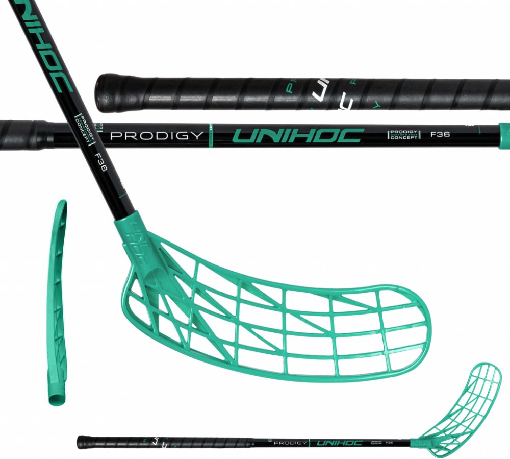 Florbalová hokejka Unihoc Unilite Prodigy FL 36 Black/Turquoise je určená dětem. Má měkký shaft, uzpůsobenou délku populární čepele Unilite a příjemnou omotávku Elite. Hokejka je výborně vyvážená i díky čepeli vyrobené z odlehčeného materiálu PP.