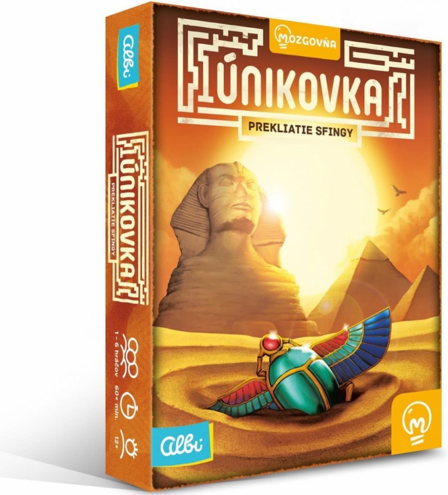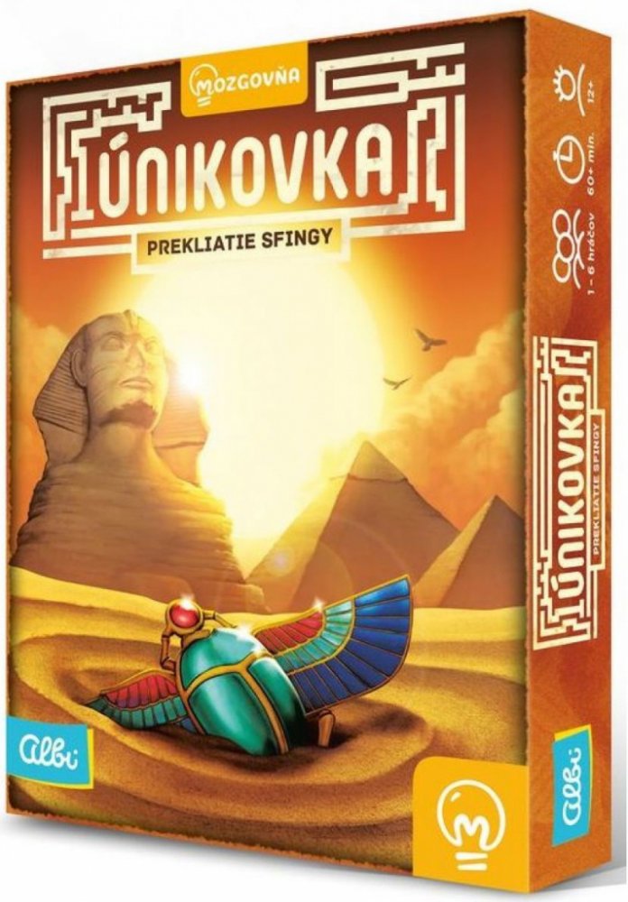 Skvělá hra na dlouhý večer nebo deštivé odpoledne je tu pro vás tentokrát ve slovenské verzi. Únikovka - Prokletí sfingy SK pro hráče od 12 let je plná unikátních rébusů. Účastníci nesoupeří mezi sebou, ale spolupracují, a hru lze hrát i v jednom. Ve hře od Albi zůstanete při prohlídce jedné z pyramid na výletě do Egypta uvězněni v tajné místnosti a je jen na vás, zda se vám podaří zlomit prokletí...