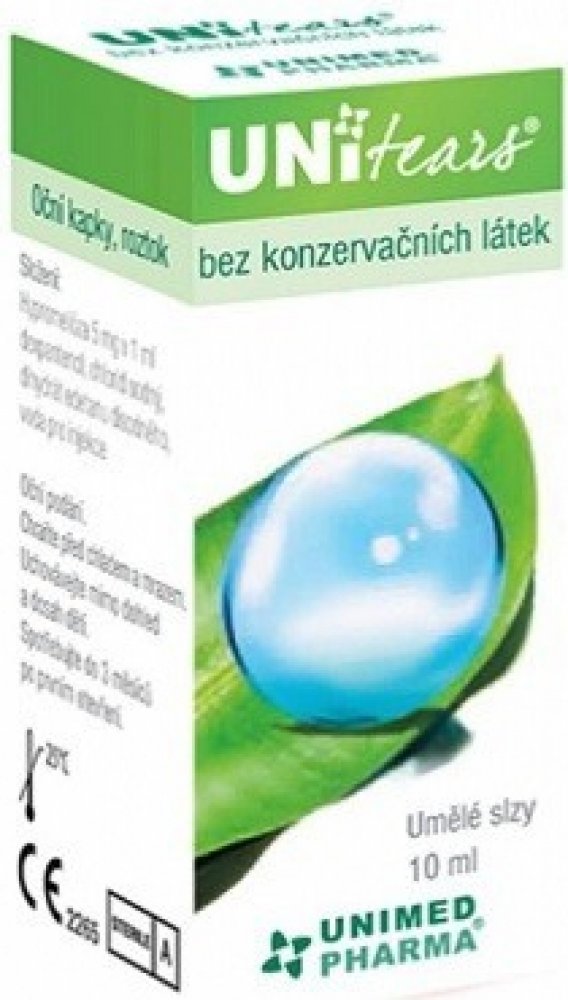 UNItear jsou oční kapky bez konzervačních látek s ochranným, epitelizačním a zvlhčujícím účinkem. Slouží k rychlé a trvalé úlevě při nepříjemných pocitech v očích, jako je štípání, pálení, pocit únavy či při suchosti očí. Jsou vhodné pro nositele kontaktních čoček a osoby s citlivýma očima. Obsahují hypromelózu a dexpantenol, který přispívá k zrychlené obnově buněk na povrchu rohovky a spojivky.
