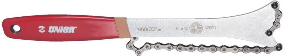 Díky svému ergonomickému tvaru a dlouhé dvojité potažené rukojeti pro pákový efekt, tento bič na řetěz snadno a bez prokluzu rozebere kazety. Vyrobeno z laserem řezané, tepelně opracované, nástrojové oceli pro pevnost a trvalý výkon. Nástroj je navržen pro práci s vícerychlostními kazetami od 6 do 12 rychlostí, včetně kazet SRAM řady X.