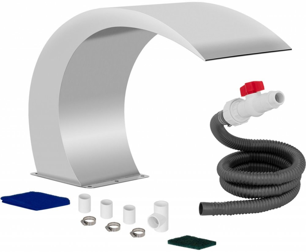 Bazénový chrlič vody - oblouk - 30 cm Kompaktní, ale zároveň silný chrlič vody ze sortimentu bazénového příslušenství výrobce Uniprodo se ideálně hodí do bazénů. Padající voda, její pohyb a její šumění posiluje uvolňující účinek tohoto živlu. Jako přívod vody k bazénu poskytuje vodopád z ušlechtilé oceli využití pro jemnou masáž šíje a krku. Další vodopádové sprchy v různých velikostech a provedeních naleznete v našem e-shopu pod Bazénovým příslušenstvím. šířka 30 cm pro konstantní, rovnoměrný tok vody dominantní prvek v zahradách, bazénech, jezírkách, rybníčcích nebo v kombinaci několika přepadů jako kaskáda konstrukce z ušlechtilé oceli zaručuje dlouhou životnost, snadnou údržbu a elegantní design obohacuje vodu kyslíkem působí relaxačně na lidské smysly