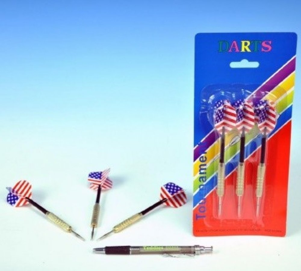Ostré kovové hroty šipky. Rozměr balení cca 11 x 25 cm (D x V).