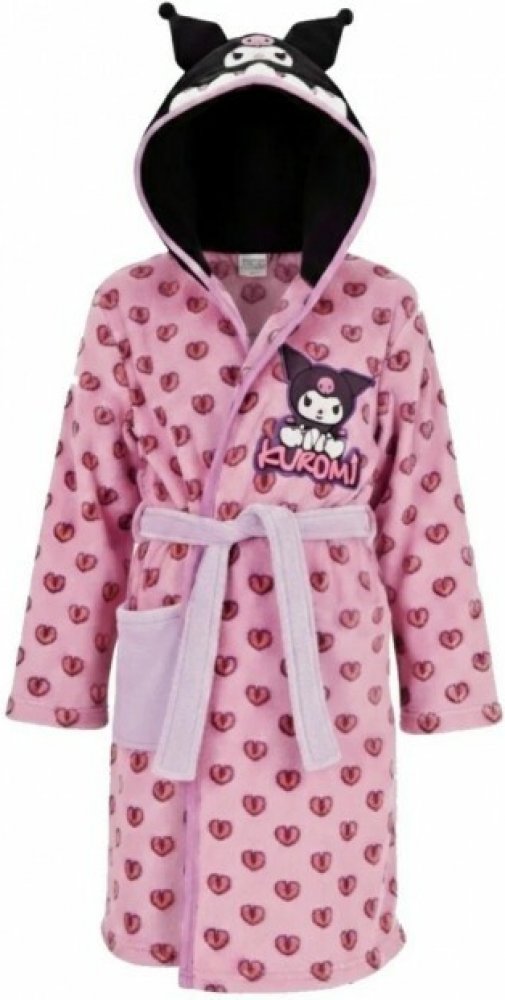 Tento rozkošný a zároveň stylový župan s motivem Kuromi z rodiny Sanrio je nutností pro každou fanynku. Je vyroben z extra hebkého fleecu, který perfektně zahřeje po koupání, ráno nebo během relaxace. Růžový župan je po celé ploše zdoben jemným potiskem zlomených srdcí. Kapuce je navržena ve stylu Kuromi – je černá s růžovým lemem, s typickými černými oušky a růžovou lebkou. Župan má dlouhé rukávy, praktickou kapsu a pásek na zavazování v pase, což zajišťuje pohodlí a správné uchycení. Je ideální na domácí lenošení, po koupání nebo na pyžamovou párty. Materiál tvoří 100% polyester v provedení hebký fleece, který je teplý, lehký a velmi příjemný na dotek. Doporučujeme prát jej při 30–40 °C, protože fleecové materiály se snadno udržují a rychle schnou.