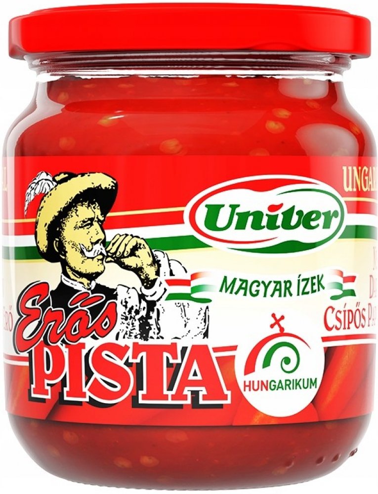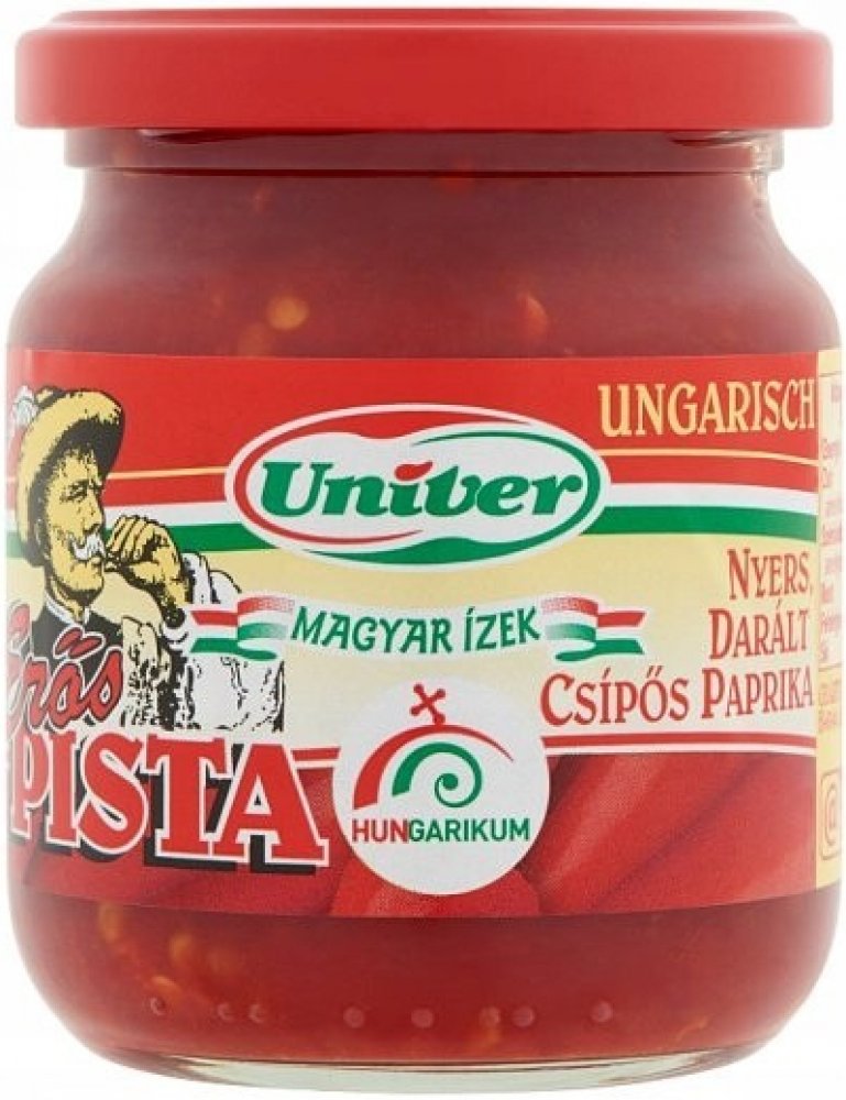 Maďarská specialita - paprikový krém nejvyšší kvality, pálivý.V malé sklenici gigantická síla!Složení: Syrová mletá pálivá paprika (87%), Jedlá sůl (průměr 11,5%), Zahušťovadlo (xanthan), Kyselina (kyselina citronová), Konzervant (sorban draselný).Použití: do gulášů, omáček, polévek