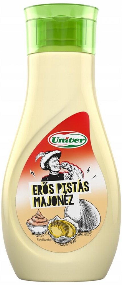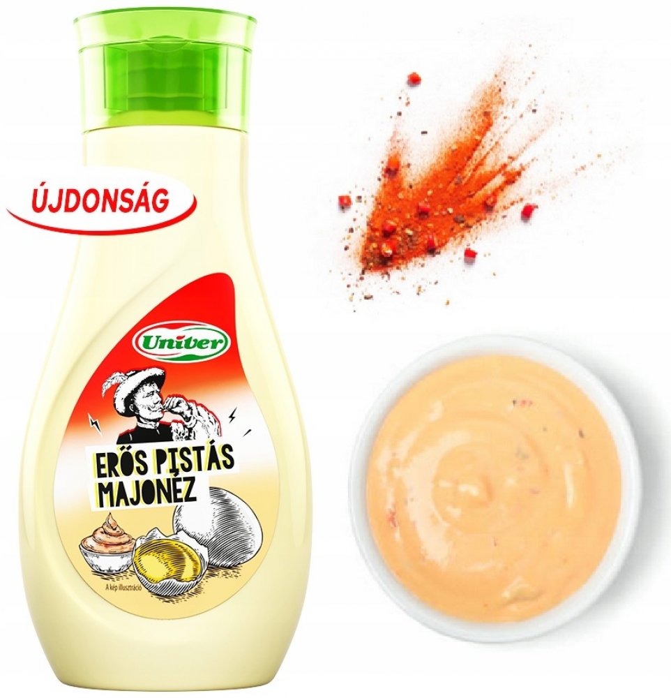Pikantní majonéza s Eros Pista velká 400g - Erős Pistás MajonézMajonéza Univer Strong Pistás vděčí za svou jedinečnou esenci obsažené v ní Hungarikum. Setkání dvou výjimečných produktů s bezkonkurenčním chuťovým zážitkem. Měkká, krémová majonéza a Erős Pista, nezbytná součást maďarské gastronomie, činí sendviče a pečení, které konzumuje, nezapomenutelnými.