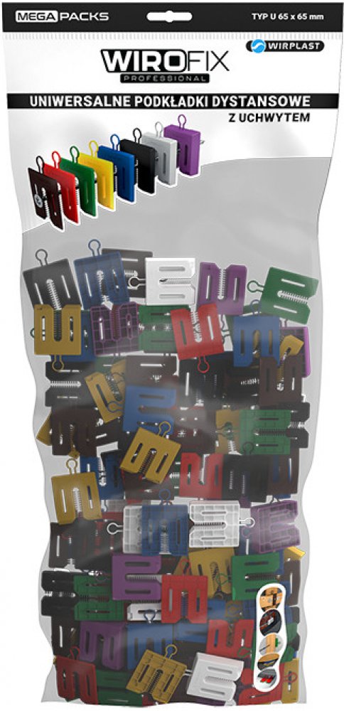 Univerzální distanční podložky s bočními otvory na šrouby a s úchytkou - 160 ks / mega pack
