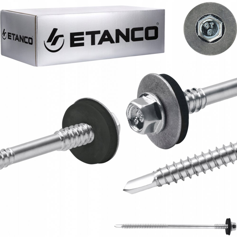 Šestihranná hlava zajišťuje snadnou a bezpečnou montáž šroubů, což výrazně usnadňuje práci a zvyšuje efektivitu montáže. Charakteristické označení výrobků ETANCO umožňuje jejich snadné rozpoznání, každá výrobní šarže obdrží jedinečné číslo, což umožňuje její přesnou identifikaci.