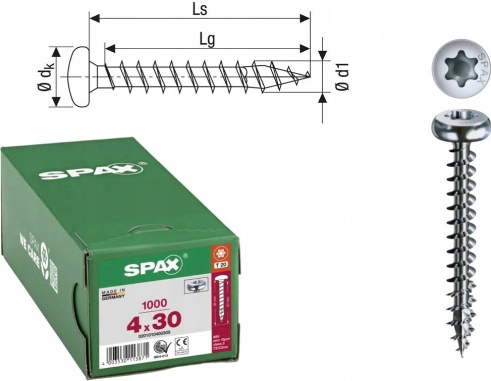 Univerzální vruty Spax 4 x 30 mm, 0,01 kg / 1000 ks