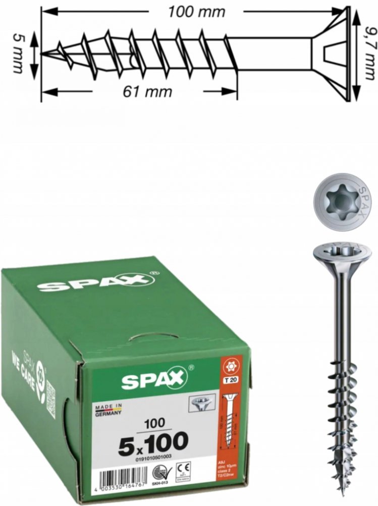 Univerzální vruty Spax 5 x 100 mm, 100 ks