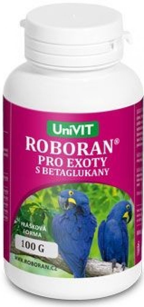 Kombinovaný vitamíno-minerální přípravek s pupalkovým olejem, který složením a vzájemným poměrem jednotlivých složek odpovídá potřebám okrasného ptactva. Je vhodný k doplnění a biologickému vyvážení neplnohodnotné krmné dávky. Působí na zvýšení odolnosti a ke zlepšení celkové tělesné kondice, hlavně v zimním a jarním období, v období hnízdění a při stresových stavech. Pupalkový olej působí jako antioxidant, který pomáhá předcházet chorobám častým při chovu exotických ptáků v zajetí.Použití: Používá se v krmivu, které ptáci ochotně přijímají (míchanice, kousky ovoce nebo zrniny s několika kapkami oleje smíchané s přípravkem).Dávkování: Nejvhodnější je 1% koncentrace v krmivu po dobu alespoň 4 týdnů, podle potřeby i déle. Při dlouhodobém podávání se může u některých jedinců projevit snížená ochota přijímat přípravek. V takovém případě stačí ROBORAN na týden vysadit. Přípravek je vhodný i pro holuby.