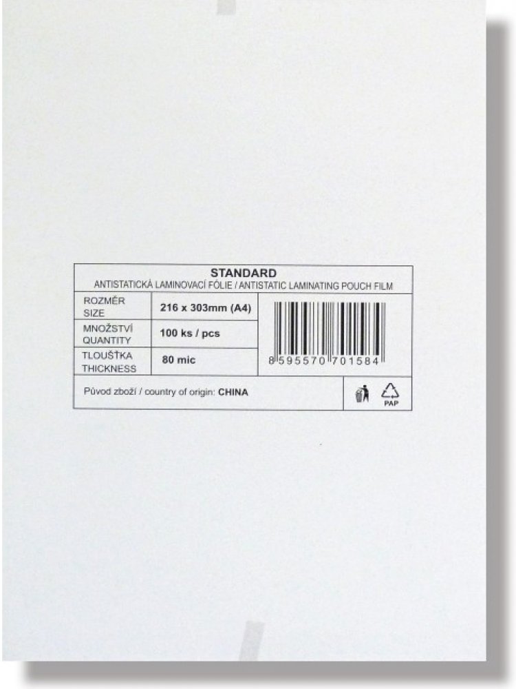 Laminovací fólie Standard A4 80mic. Čirá lesklá laminovací fólie. Fólie určená pro všechny laminovací stroje od formátu A4.