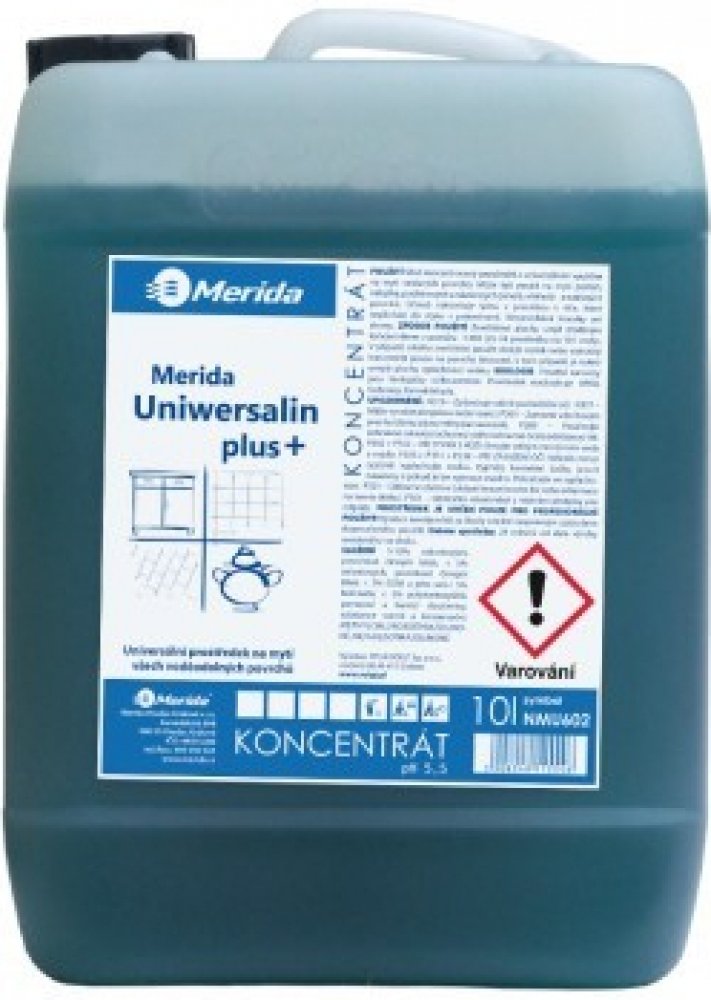 Kód produktu : NMU602 Univerzální prostředek na mytí a ošetřování veškerých povrchů, odolných vůči působení vody. Může se používat na mytí podlah, nábytku, podlahových a nástěnných panelů, kachlíků, a natřených povrchů. Účinně odstraňuje špínu z porcelánu a skla, které nepřichází do styku s potravinami. Neponechává šmouhy ani skvrny. Ředění vodou v poměru až 1 : 400 ( 25 ml koncentrátu na 10 l vody). Vhodný zejména i na mytí plovoucích podlah. Obchodní balení: 10 l kanystr Parametry obchodní balení: 10 l pracovní roztok: 1:400 pH koncentrátu: 6 pH roztoku: 7