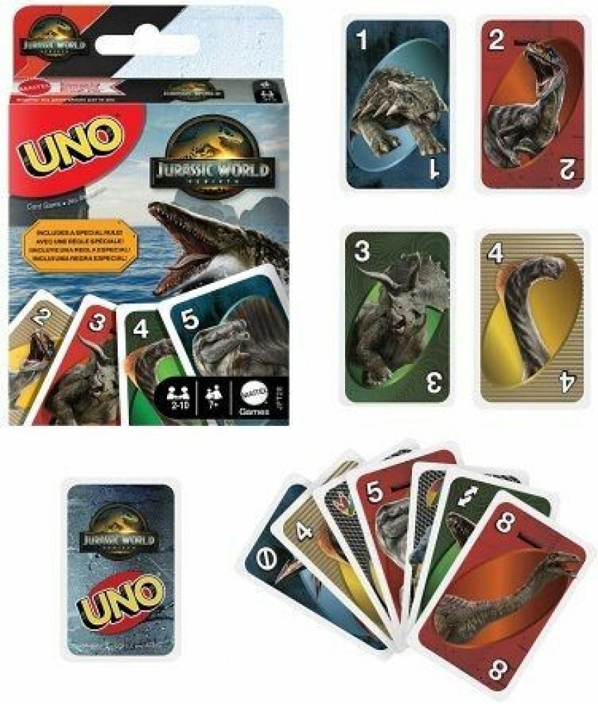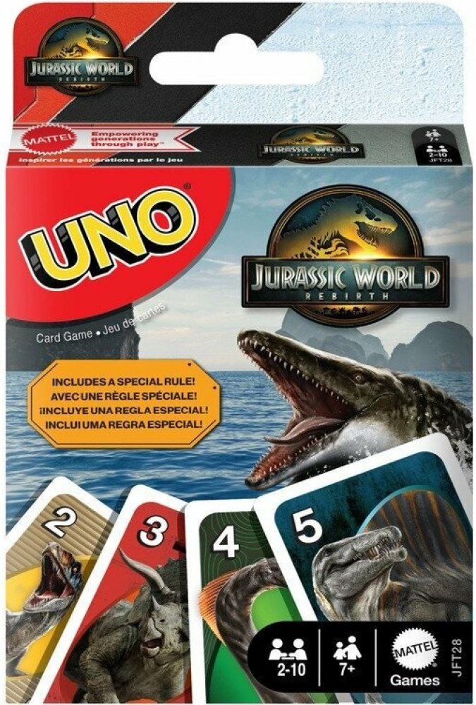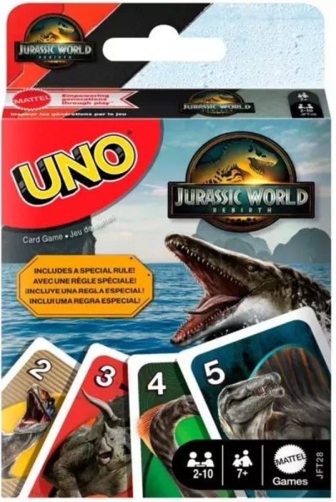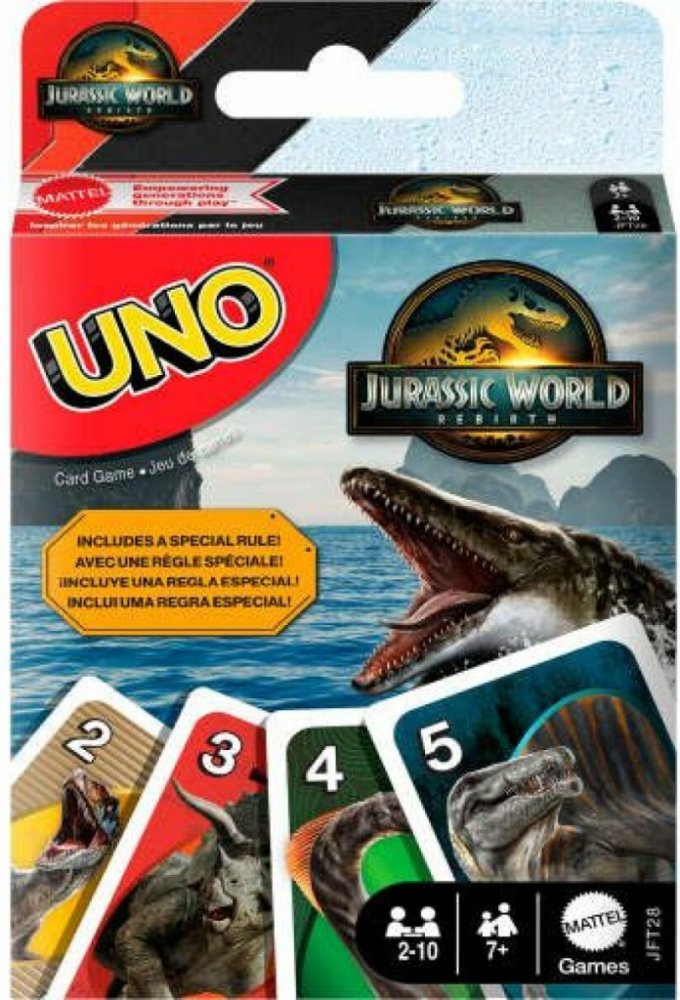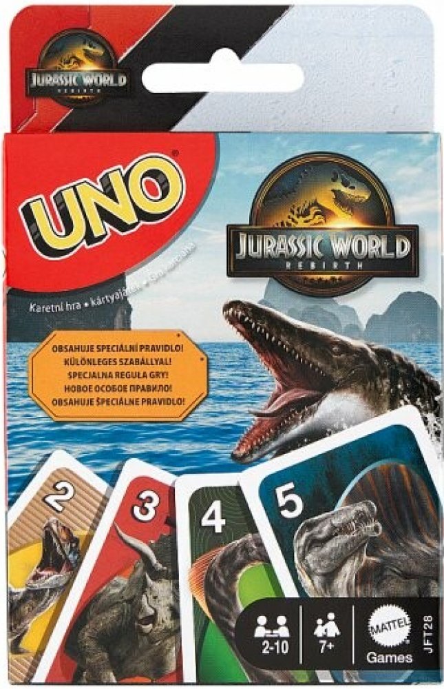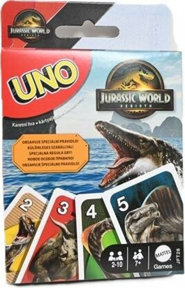 UNO Jurský svět přináší oblíbenou karetní hru v novém, dobrodružném stylu inspirovaném ikonickými obrázky z filmové série Jurský svět. Kromě klasických pravidel obsahuje i speciální kartu, která do hry přináší nový zvrat a ještě více napětí. UNO Jurský svět přináší oblíbenou karetní hru v novém, dobrodružném stylu inspirovaném ikonickými obrázky z filmové série Jurský svět. Kromě klasických pravid...