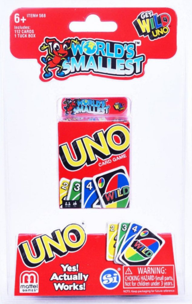 Hledáte Mini UNO ? U nás za skvělou cenu 188,00 Kč! Neváhejte a nakupte u profesionálů. Nejmenší karetní hra UNO na světě. Super Impuls to opět dokázal! Hra obsahuje: 108 karet 1 list s návodem 1 krabičku. Nenechávejte zábavu doma! Tato karetní hra UNO se snadno vejde do kapsy nebo kabelky a je skvělá aktivita na cesty letadlem, vlakem a autobusem.
