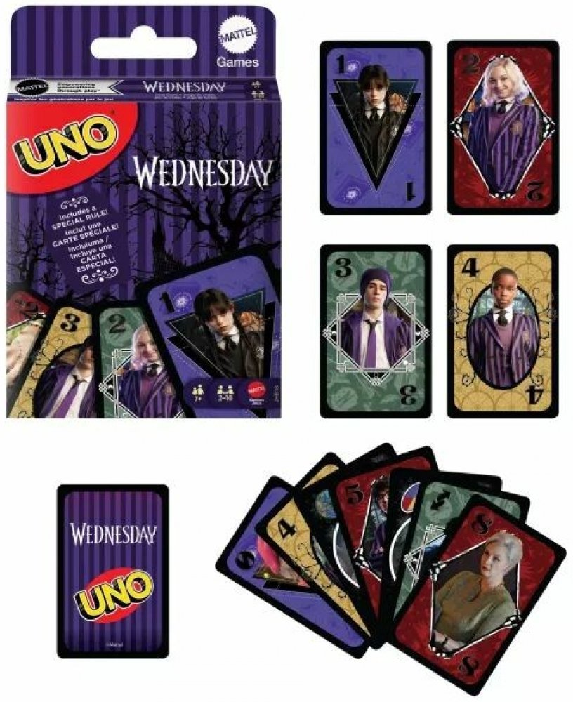 UNO je nepochybně jednou z nejpopulárnějších karetních her na světě, stejně jako Wednesday patří mezi nejpopulárnější seriály. A když se tyto dvě setkají... může začít UNO večer s Wednesday!