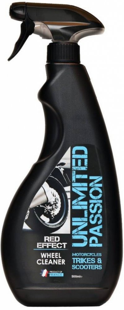 Je vysoce efektivní a silný čistič kol a brzd. Dokonale odstraní brzdný prach a odolné nečistoty z povrchu kol, ráfků, brzdových kotoučů a brzdových třmenů, a to jak vně, tak uvnitř bez nutnosti demontáže. Red effect je určený na všechny typy kol motocyklů a aut – leštěné slitiny, hliníkové, chromové, eloxované a lakované. Po nanesení a kontaktu s nečistotou přípravek zčervená. Zčervenání po opláchnutí zmizí bez zanechání stopy.