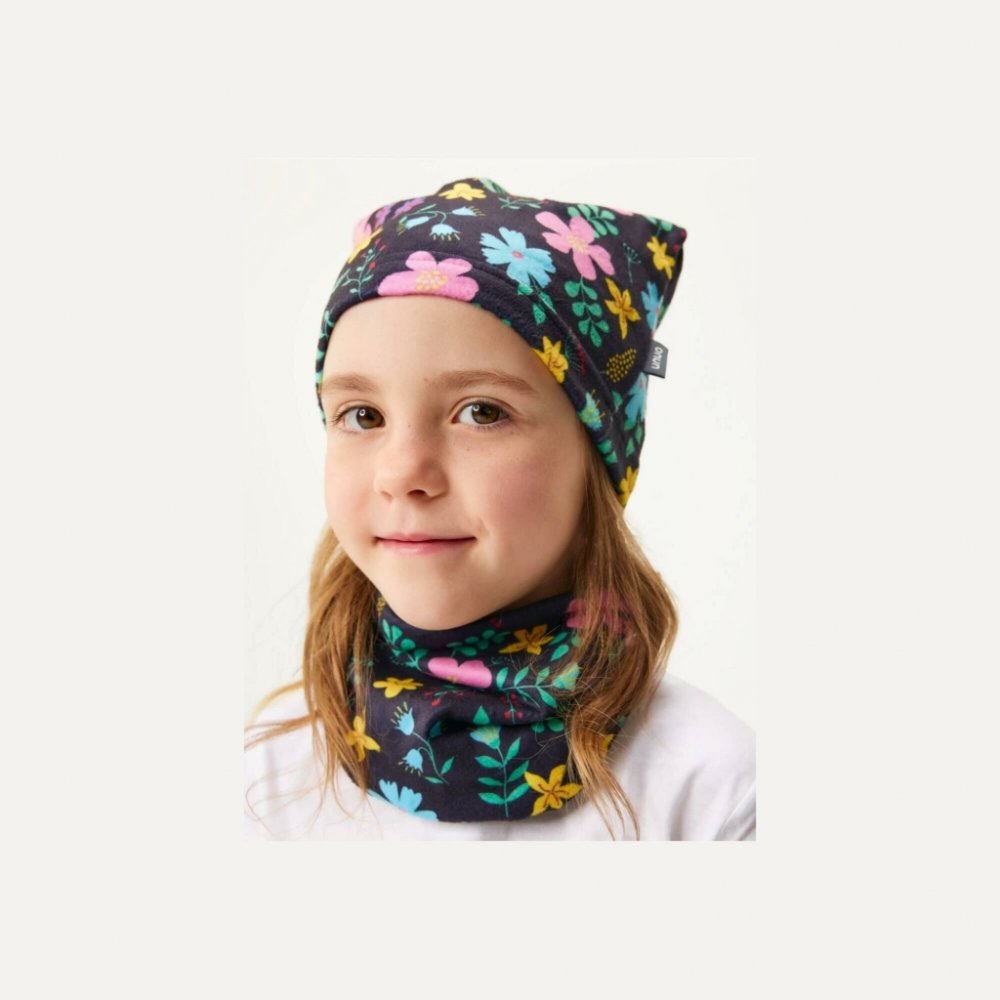 Unuo dětská čepice fleecová kytičky