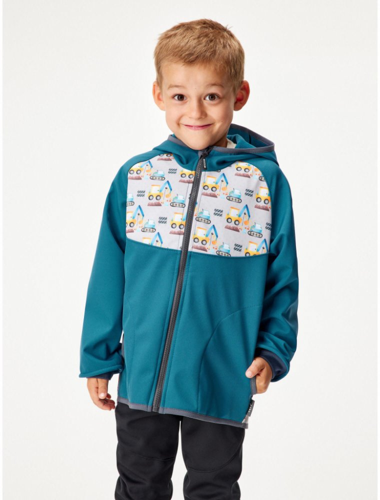 Unuo dětská softshellová bunda Basic s fleecem Bagry kobaltová