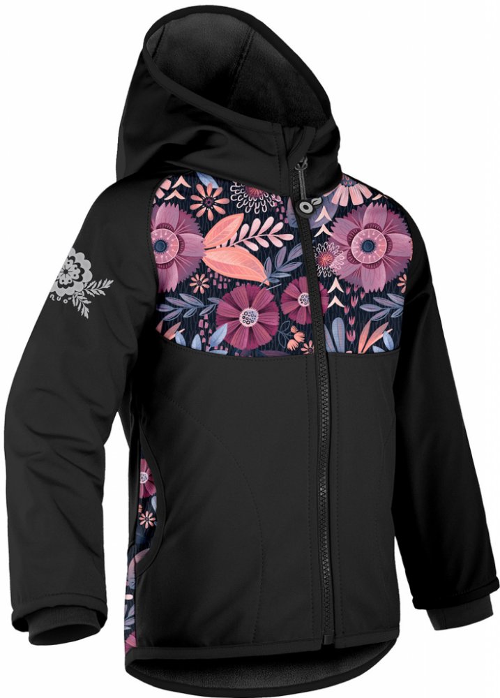 Unuo dětská softshellová bunda s fleecem Basic Černá Kouzelné květiny