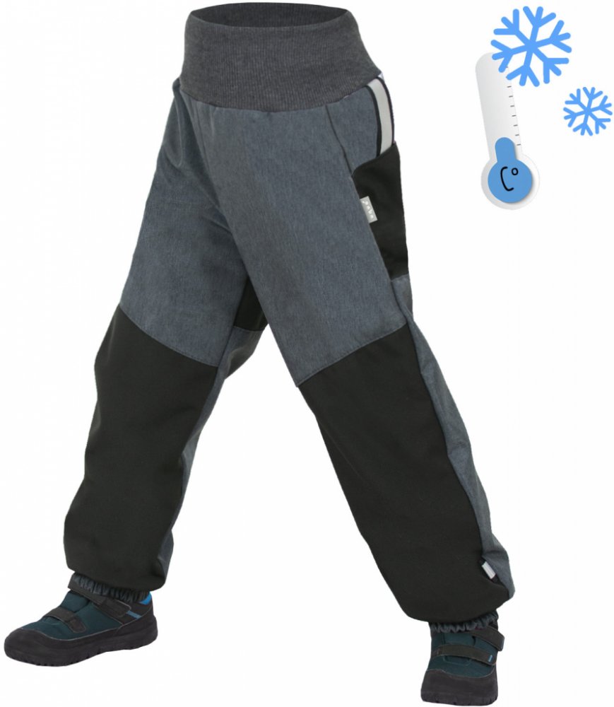 Unuo dětské softshellové oteplovačky s fleecem černá žíhaná antracitová