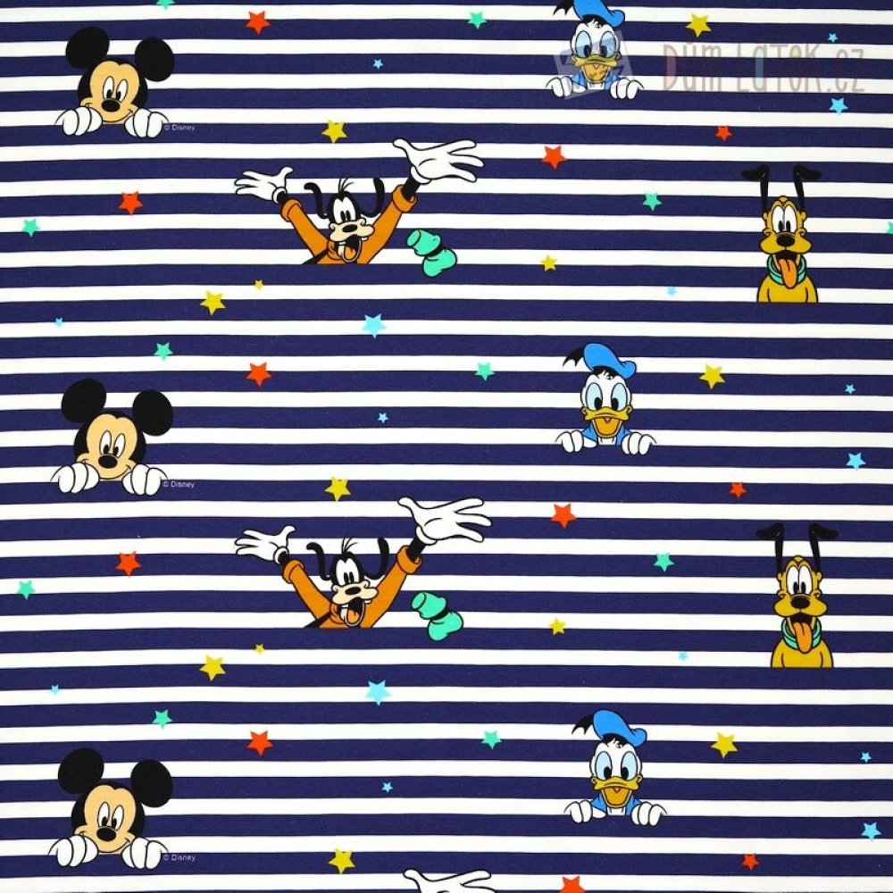 Krásný a příjemný bavlněný úplet s digitálním postiskem oblíbené pohádky Mickey Mouse. Látka je hladká a poddajná,tudíž se s ní snadno pracuje.