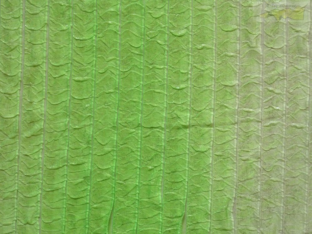 Tento zelený plisé duhovaný úplet s volány je splývavý a vhodný na výrobu letních šatů, triček, sukní, nebo halenek. stříháme klasicky po délce.