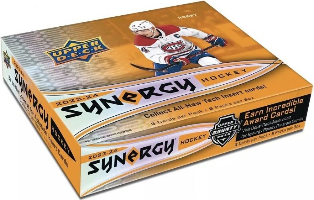 8 balíčků v boxu/3 karty v balíčku. KAŽDÝ BOX PRŮMĚRNĚ OBSAHUJE: 1x limitovanou základní, SP základní Rookies - Red paralelu, podepsanou nebo Metal kartu Impressions kartu 5x New Game, #1 Hits, Generators, Monuments, a/nebo Start your Engines kartu 8x Red paralelní kartu - 50% bude obsahovat bounty kód (průměrně) 2024-25 Synergy Hockey představuje základní set 125 ks karet, který zahrnuje nízko limitované veterány, současně nízko limitované veterány. Skutečné rookie karty jsou limitovány do /25 kusů a karty veteránů a současných hráčů jsou limitovány do /15 kusů, což dělá základní set Synergy velmi atraktivní! Základní set se skládá z následujících kategorií: - Veteráni (čísla 1-60) - Greats (61-75) - Nováčci - Rookie (76-115) - Nováčci - Rookie SP (116-125). Sbírejte jak Red, tak Purple paralelky celého základního setu. Průměrně 50% Red paralel obsahuje kód bounty na zotření a sběratelé, kteří posbírají kompletní Red set, mohou získat úžasné odměny v podobě bounty karet. Více informací níže. Všechny Purple paralelní verze jsou limitovány do /99 kusů nebo méně a mnoho z nich navíc obsahuje podpis! Dávejte pozor také na nízko limitované (všechny limitované do /25 nebo méně) Portrait a Auto Portrait variace karet Rookie SP.