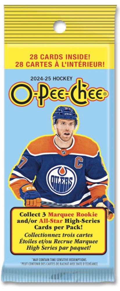 O-Pee-Chee boasts a comprehensive 600-card base set which includes a 100-card high-series subset featuring only 2023-24 All-Stars and 2024-25 Marquee Rookies. Collect three (3) All-Star and/or Marquee Rookie cards per pack, on average!