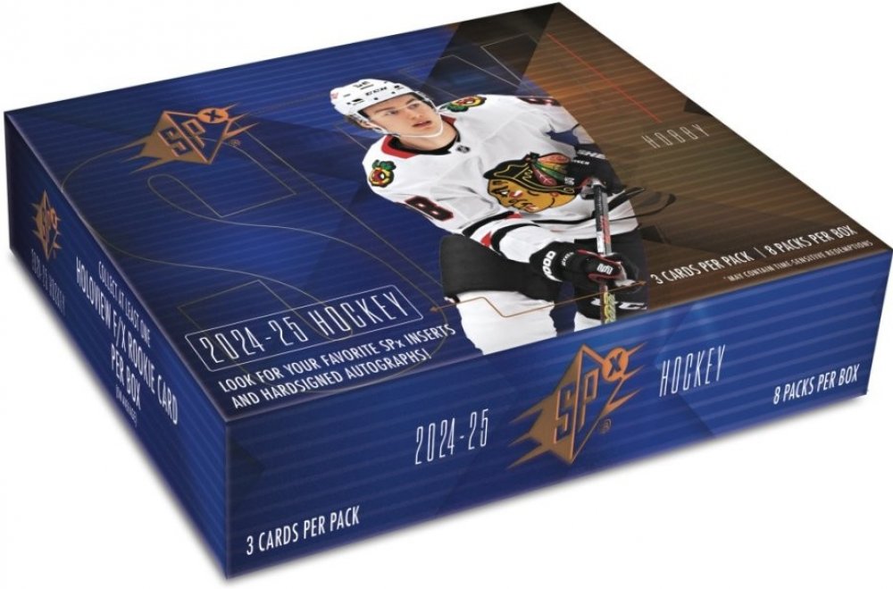 2024-25 SPx přichází s razantní změnou, novou strukturou plnění, která jistě vylepší zážitek z rozbalování! Skoro by se dalo říci, že jde o návrat ke kořenům!Místo dřívějšího jednoho balíčku, box nyní obsahuje balíčků rovnou 8, přičemž každý balíček obsahuje 3 karty!V sérii také možnost najít podepsané karty (průměrně 1 ks na každé 2 boxy) a pozor, mezi nimi také spousta tzv. HARD SIGNED podpisů, tedy přímo na kartě!