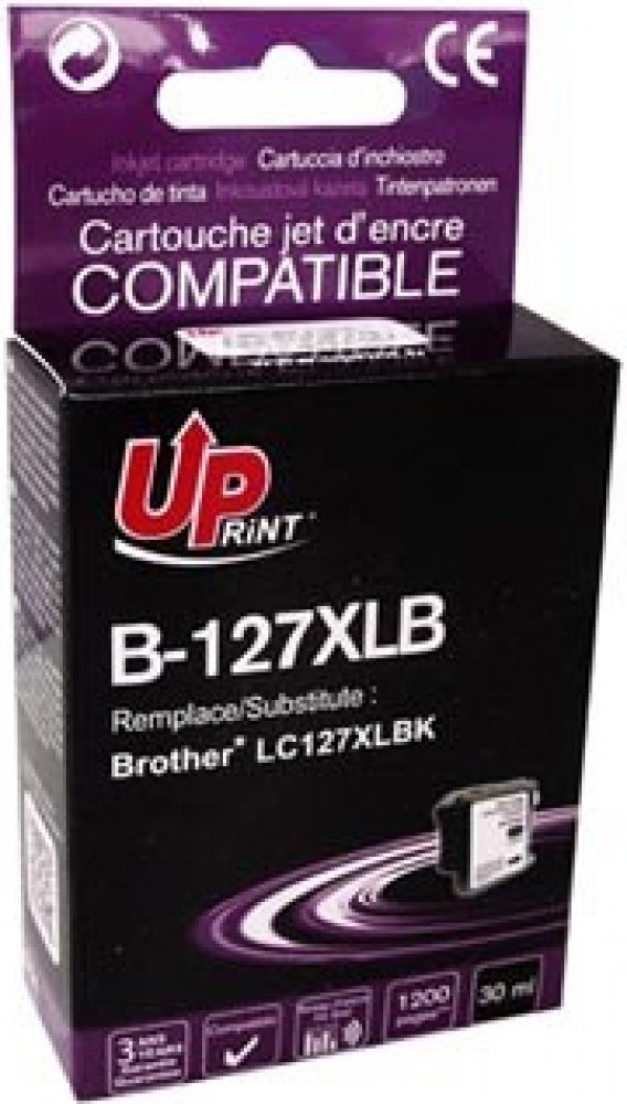 Černá kompatibilní cartridge Brother LC-127XLBK. U kompatibilních kazet zaručujeme vysoce kvalitní tisk a počet stran srovnatelný s originální náplní. Na kompatibilní (neoriginální) inkoustové cartridge poskytujeme záruku do spotřebování, i případné poškození tiskárny způsobené náplní. Alternativou kompatibilní kazety jsou renovované cartridge, u níž je potřeba dodat prázdnou kazetu. Určeno pro ti...