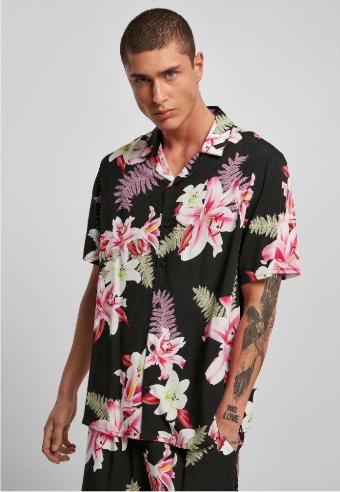 Urban Classics 100 % viskóza s dlouhým rukávem volnočasové černá regular fit květované