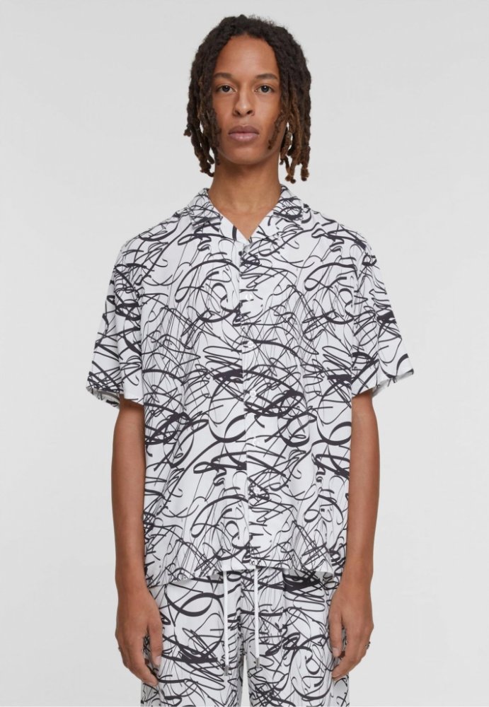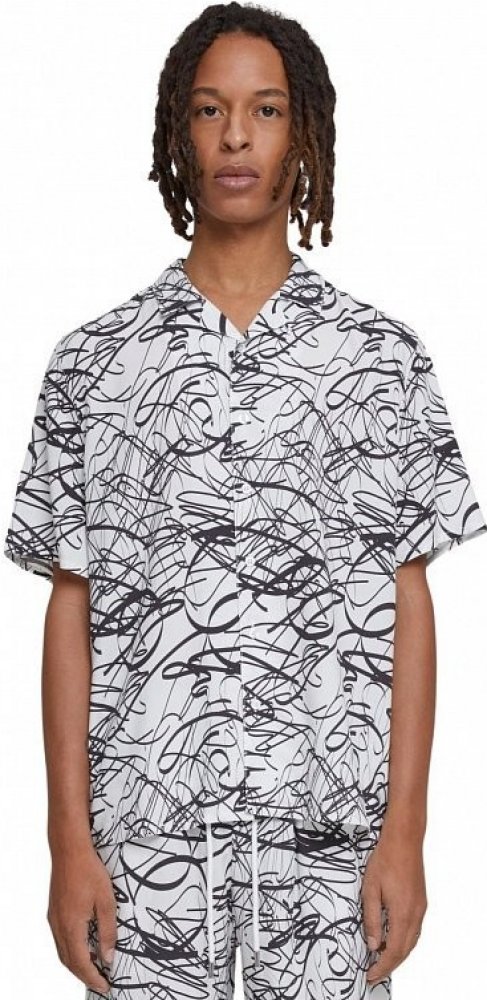Urban Classics letní plážová pánská košile z lehké viskózy white scribble