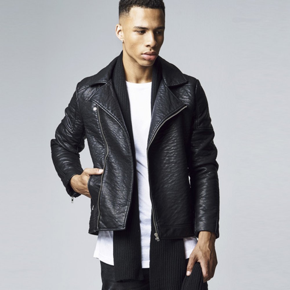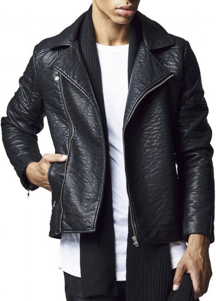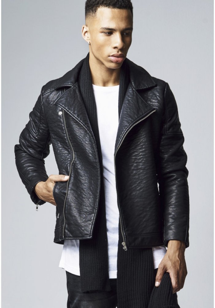 Urban Classics pánská kožená bunda Leather Imitation Biker Jacket Black