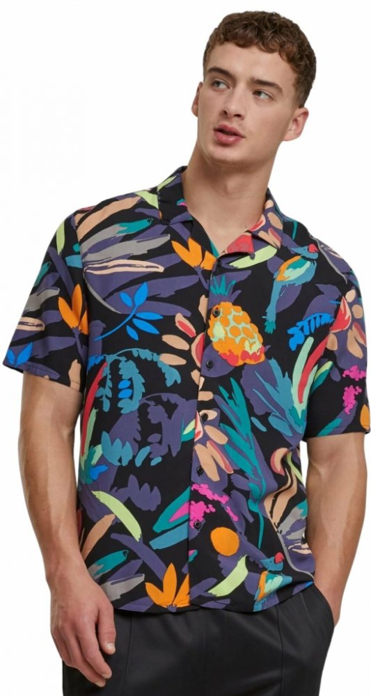 Urban Classics pánská letní plážová košile z lehké viskózy blackfruity