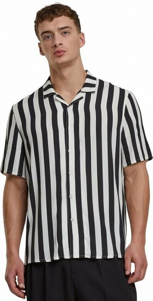 Urban Classics pánská letní plážová košile z lehké viskózy černá/bílá